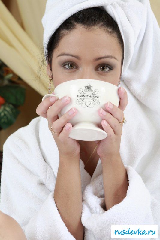 Красотка только что пришла с морозной улочки и очень сильно замерзла. Она набрала себе чайку в большую кружечку и одела белый, тепленький халатик. Немного согревшись она решила разогреть прохладную комнату своим горячим телом... Она начала нежиться в своих ласках...