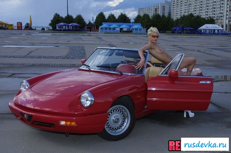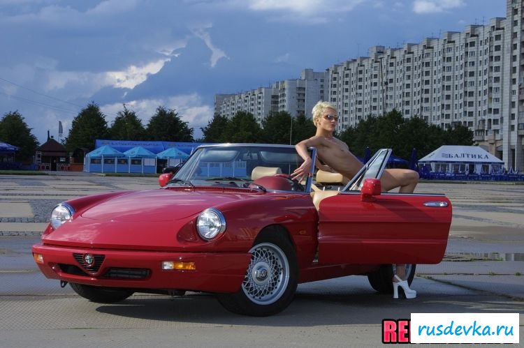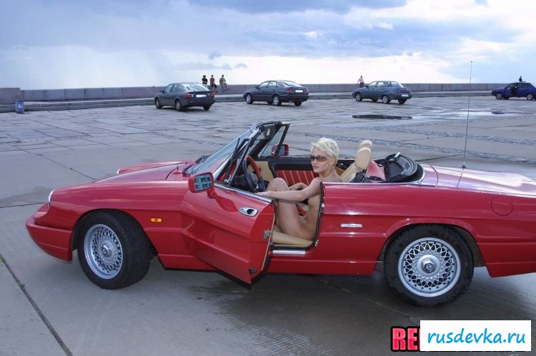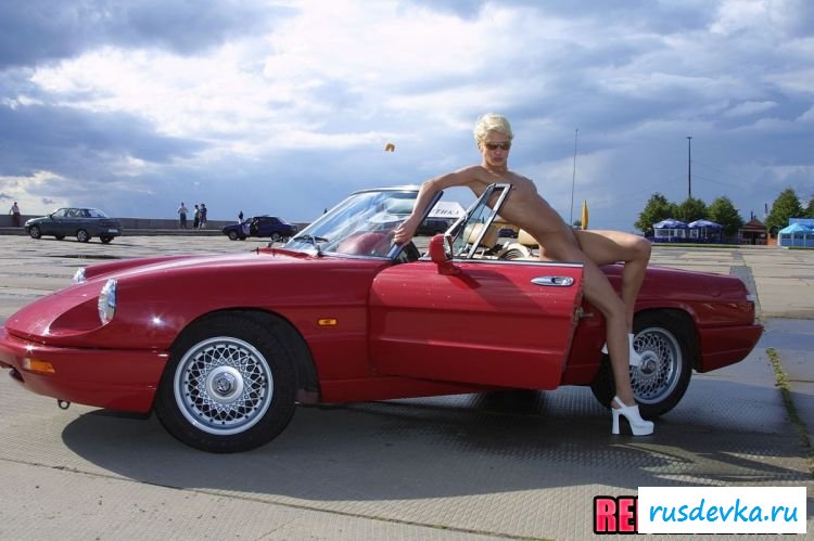 Любой мужчина сразу может понять всё, по тому, как выглядит эта длинноногая пассия. На ней же совершенно нет никакой одежды, кроме обуви на высоком каблуке, что позволяет сразу же подробно рассмотреть всё раздетое тело. Ну, а то, что рядом находится красный кабриолет, то это позволяет голой малышке предстать в настоящей автомобильной эротике и максимально варьировать свом пошлые позиции. Вообщем обнажённая сучка постаралась на славу и позволила всем хорошо насладиться собою.