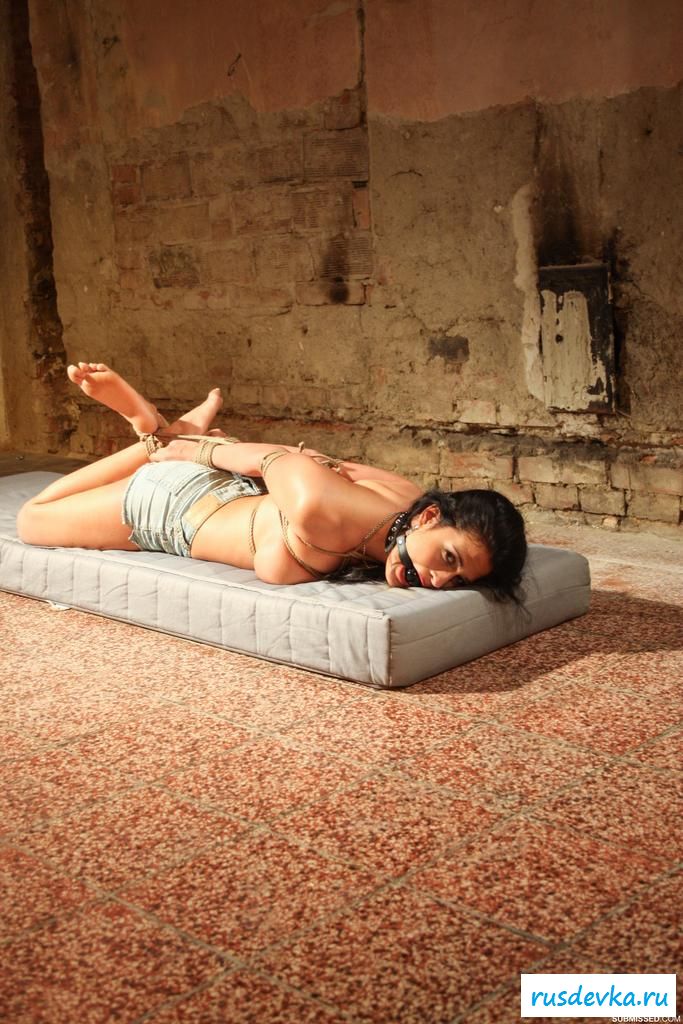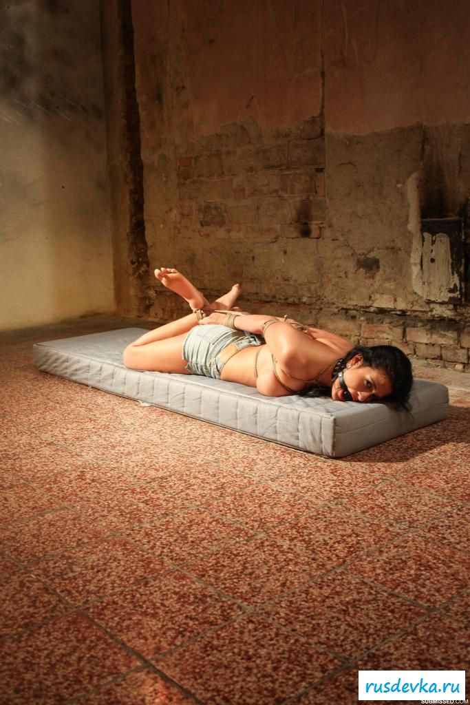 Эта покорная девка с удовольствием потратит это время на Вас, хотя другого варианта у нее попросту нет. Она находится на матрасе в каком-то помещении, где будет позировать с обнаженной грудью как стоя на коленях, так и лежа. Господин убедился в том, чтобы его рабыня была как следует крепко связана, даже не подумывая о побеге. И пока она беспомощно стоит с кляпом, он ее бессовестно фотографирует.