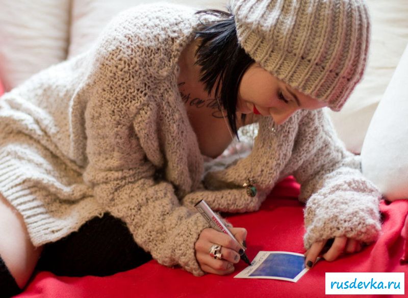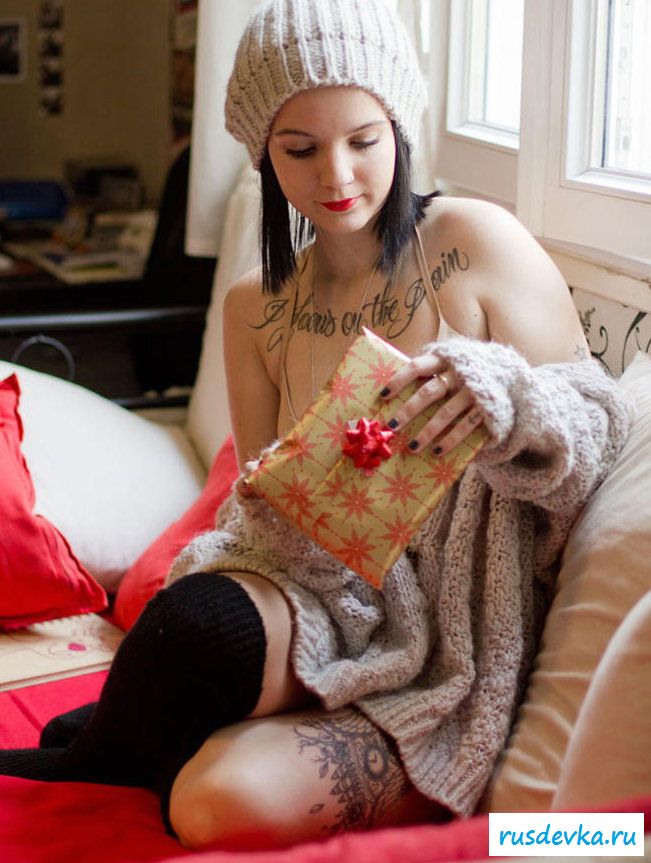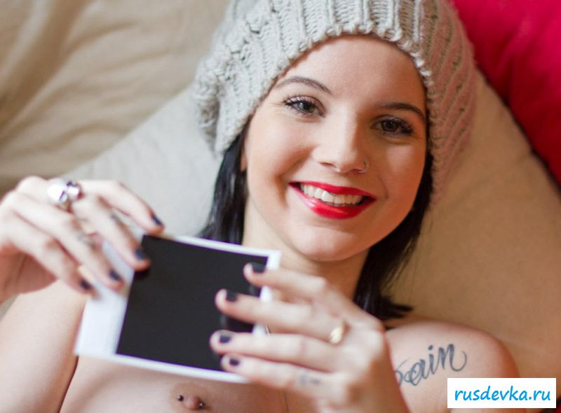 На красном диване кутаясь в свитер и надетой вязаной шапке, белье телесного цвета и черные гольфы скучает симпатичная брюнетка. Эротика милашки пройдёт забавно и интересно, особенно когда девка засветит прикольные тату. Под конец сильно заскучав девчонка покажет привлекательная грудь и красивую тщательно вы бритую киску и сделав фото на старый Polaroid, красотка подпишет снимок и выкинет его в окно. Можно завидовать этому счастливчику, который найдет послание и прочитает надпись на нём.