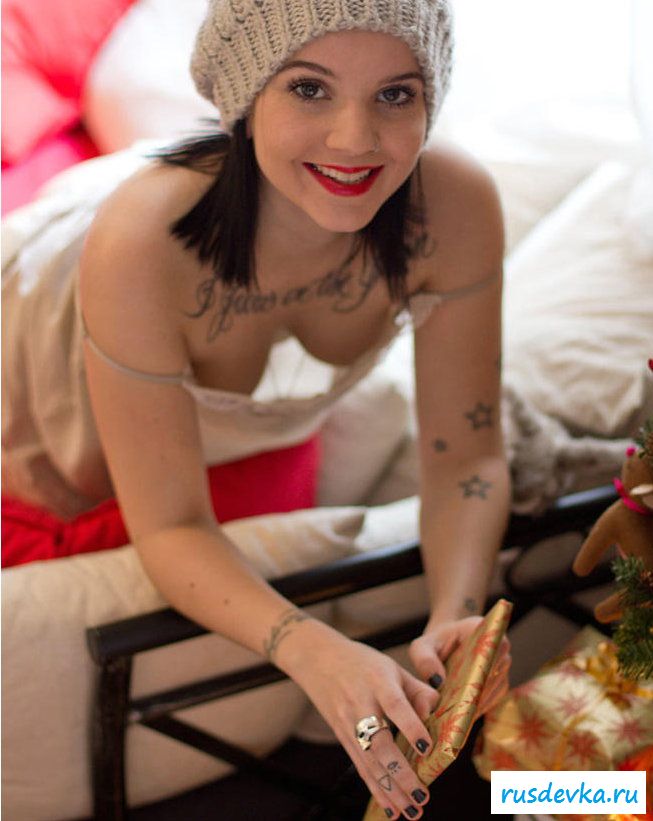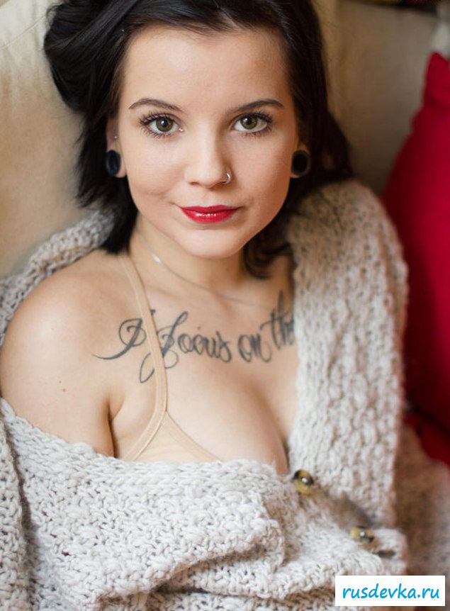 Эротика милашки на диване с прикольными татухами (44 фото)