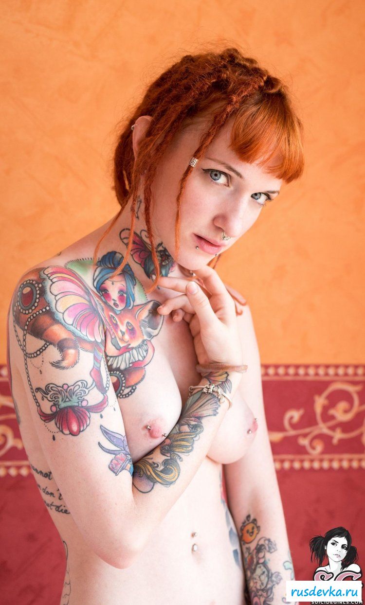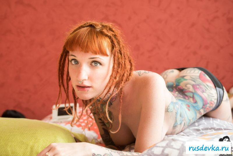 Можно любоваться достаточно скромной девицей с длинными худыми ножками, которая не знает кого еще удивить пирсингом на молодом горячем теле. Рыжая стерва крутится на постели и хвалится подтянутой попочкой, а заодно яркими татуировками по всем возможным местам. Рыжая стервочка, сразу видно, кого - то очень ждет в гости и при сладких мыслях мило улыбается, в предвкушении прекрасного и волшебного. Провести время вместе с опытной студенткой - это большая удача для парней.