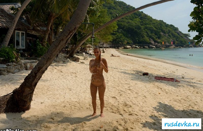 Фотографии под уличным душем обнаженной девахи на пляже