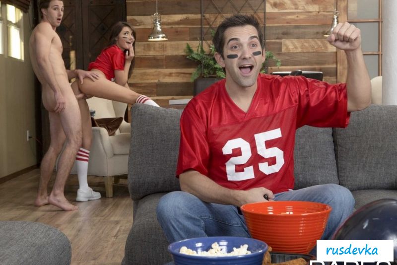 Так захватила игра в футбол, что парень даже не видит, что происходит за спиной. А там разворачивается очень интересное событие, пока он увлечен действиями игроков на экране его друг плотно работает с болельщицей. Девка без всяких комплексов опустилась на колени и сделала минет чуваку, за тем они поменялись местами. После совместных ласк девица села голой пиздой на возбужденный член. Звуки, идущие из телевизора, только подбадривали пару, заставляя быстрей в такт орущей толпе завершить начатое горячие соитие.
