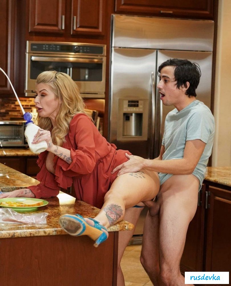 Молодой и слишком развратный парень решил устроить прямо на кухне жаркий порно инцест, чтобы подарить занятой мамаше море наслаждений во время готовки и уборки. Паренек после прелюдий активно ебет голую грудастую милфу на полу и раком у стола, после чего мнет страстно огромные обнаженные дойки столь сексапильной домохозяйки. Опытная зрелая баба с влажной пиздой учит сына красивому жаркому сексу и дарить с каждым разом все больше оргазма пылким любовницам у плиты.