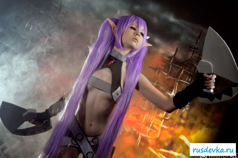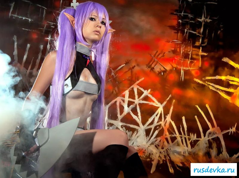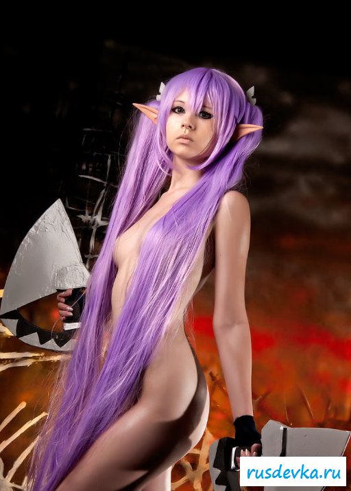 Нашумевшая фотосессия этой милой девки вызвала бурю эмоций и обсуждений в сети. Перед нами косплей худенькой девчонки принявшая образ эльфийки. Почему это поразило негодование от любителей Record Of Agarest War, до сих пор непонятно, возможно потому, что на фото представлена русская девушка решившийся на такой поступок. Лично я ничего не вижу здесь такого пред осудительного. Прикольные ушки и фиолетовые волосы героини добавляют интереса, а учитывая обнажённую небольшая грудь и выбритую киску доступно просто сносит крышу.