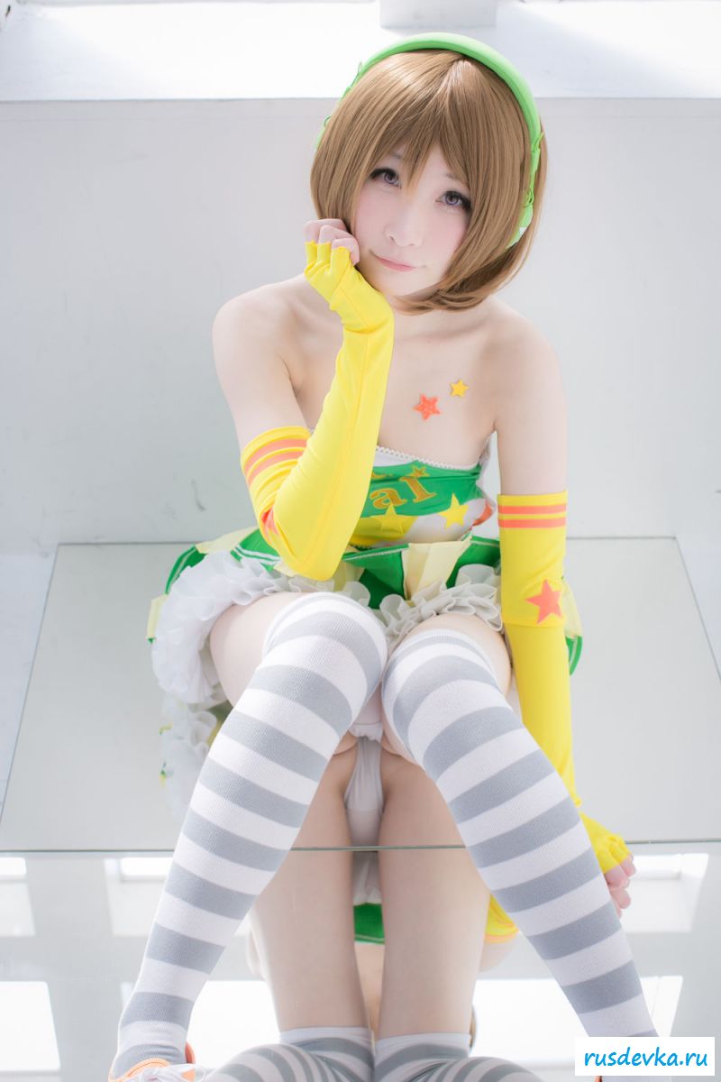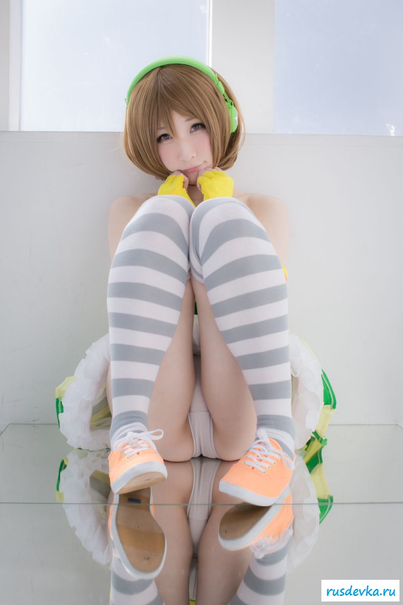 Аниме косплей раздетой девки в полосатых гольфах (32 фото)