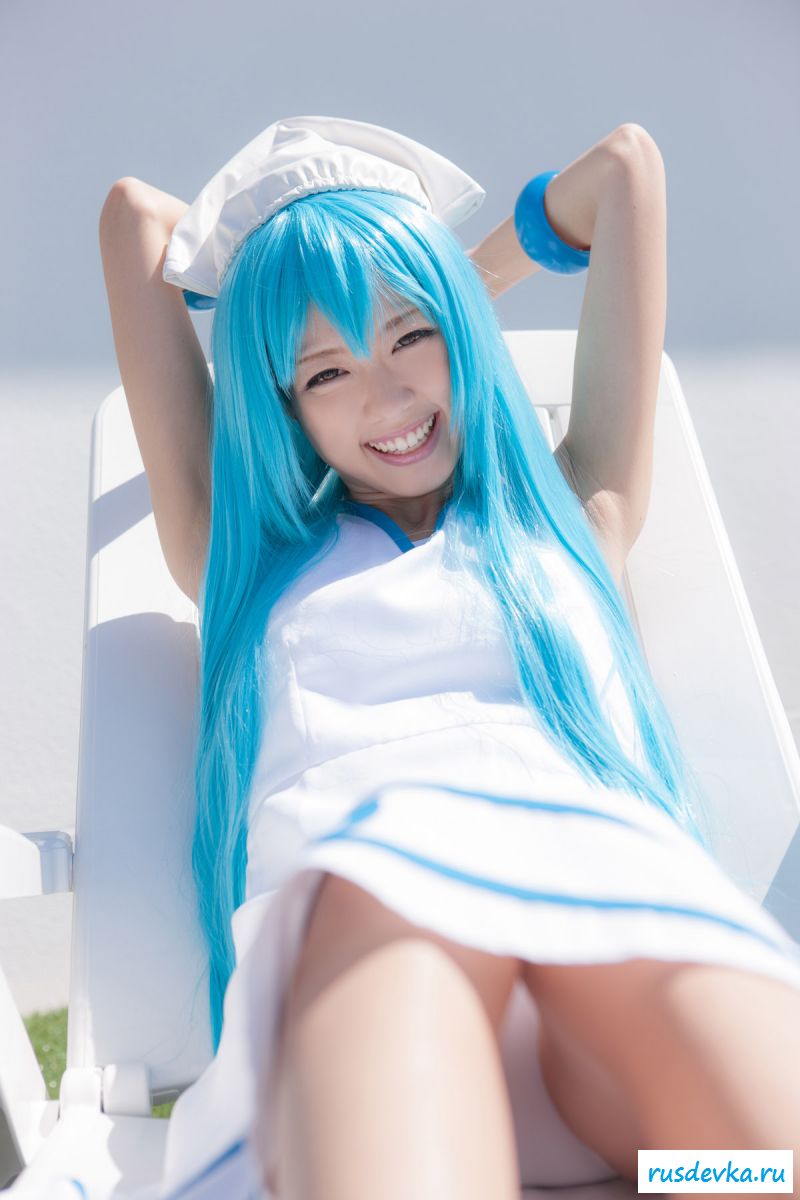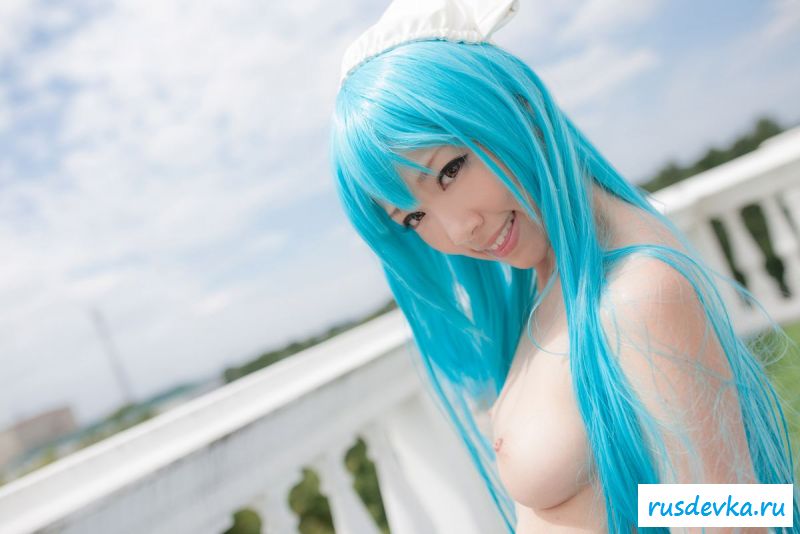 Просматривая очередную интересную фотосессия не думал, что с виду скромный косплей пойдёт намного дальше, чем легкая эротика. Девушка изображает какую-то аниме принцессу с короной на голове, волосы у неё голубые, а симпатичное личико так и манит к себе. На большой лужайке девка и покажет себя при этом она легко обнажит свою худенькое тело так просто и непринужденно, что чувствуется настоящий профессионал. Под нарядом нас ждет небольшая грудь и немного заросшая пилотка, кстати видно за ней она ухаживает.
