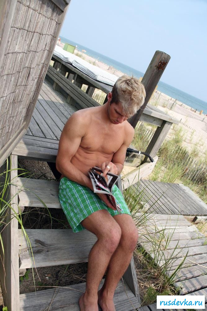 Выйди на крыльцо своей хижин расположенной рядом с океаном, парень порадовался жизни и для нас на бескрайних просторах одним движением избавился от своих шорт. Его обнажённый пенис наполовину стоит, он тоже, как и хозяин радуется возможности подышать свежим воздухом. Мужик частенько в таком виде загорает, тем более весь его пляж возле хибары принадлежит ему, можно выходить в любое время дня и ночи и никому мешать не будет. Принимая разные позы белобрысый пацан со всех сторон покажет свой отросток.