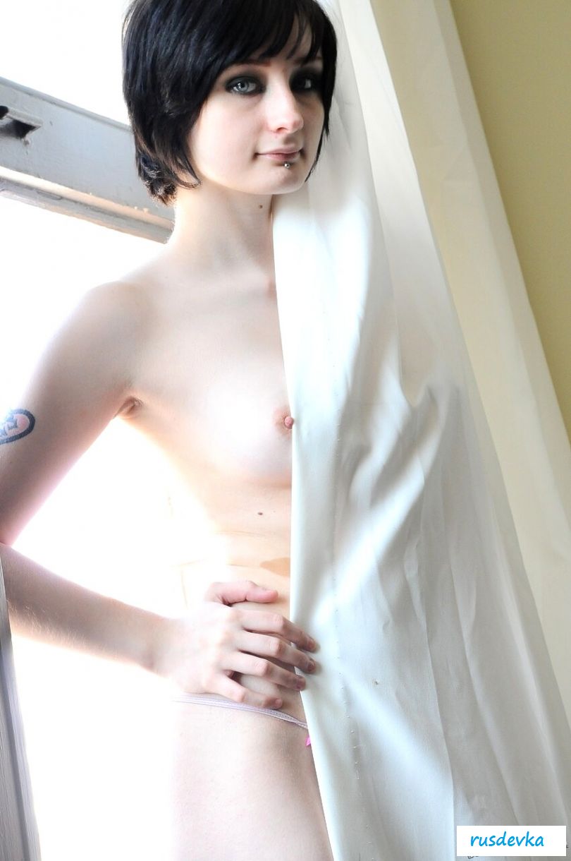 Мечтательная голая телка - эмо любит иногда оставаться в одиночестве и думать об откровенных безумных вещах, мило улыбаясь и прикуривая сигарету у окна рано утром. С такой дерзкой особой с черным макияжем и уже с голыми притягательными титьками лучше не спорить ни по какому поводу. Нежная сучка не так проста и нежна может быть, как покажется вначале, а стерва может с легкостью разбить горячее сердце даже опытного взрослого мужчины с легкостью и быстро.