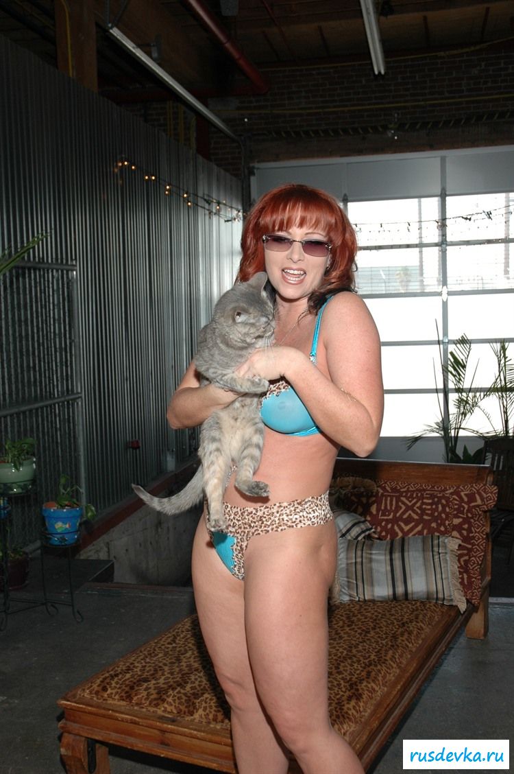 Развратная рыжеволосая дама позирует с котом. Женщина имеет очень хорошую фигуру и красивую внешность. Во время фотосессии она не торопясь сбрасывает шикарное белье и при этом без раздумий хвастает приподнятыми сисями, желанными ягодицами и нежной ароматной писей. Раздетые гениталии этой удивительной мадам сделают счастливым каждого взрослого мужчину.
